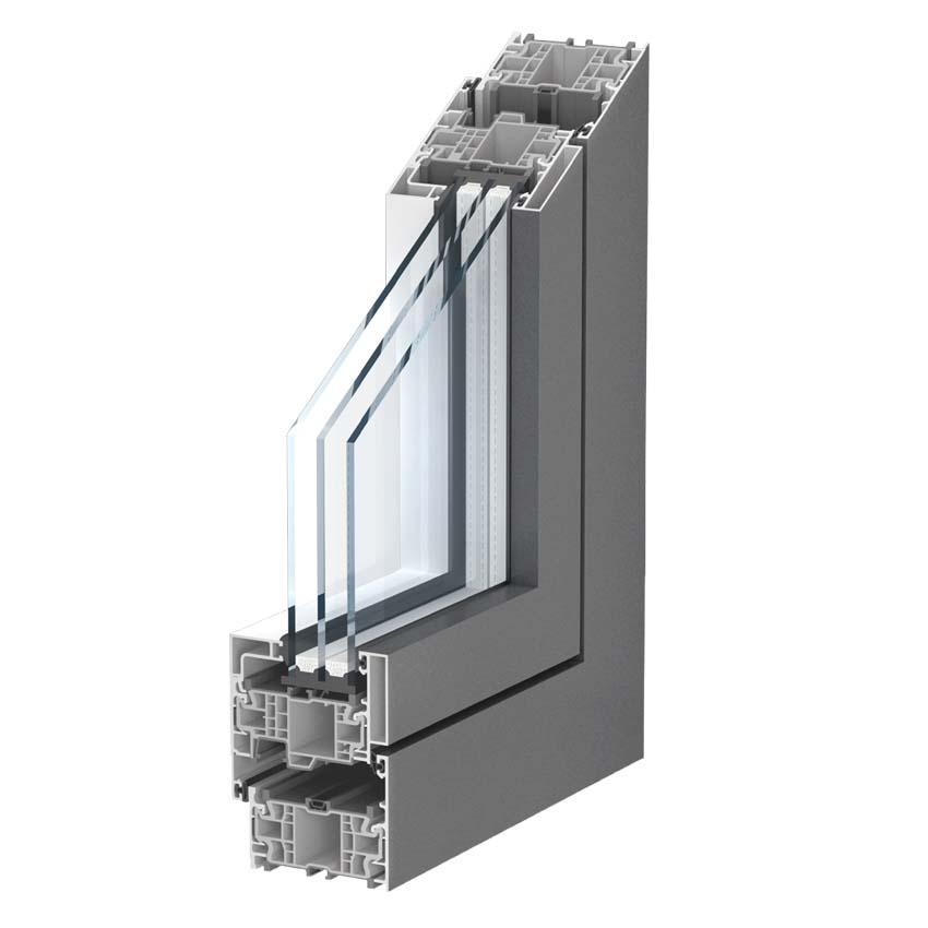 AluNext es un sistema híbrido de doble junta con corazón de PVC 100% reciclado que consigue la máxima eficiencia y sostenibilidad, aportando una mayor libertad de diseño con su acabado de aluminio y estética de líneas rectas.
